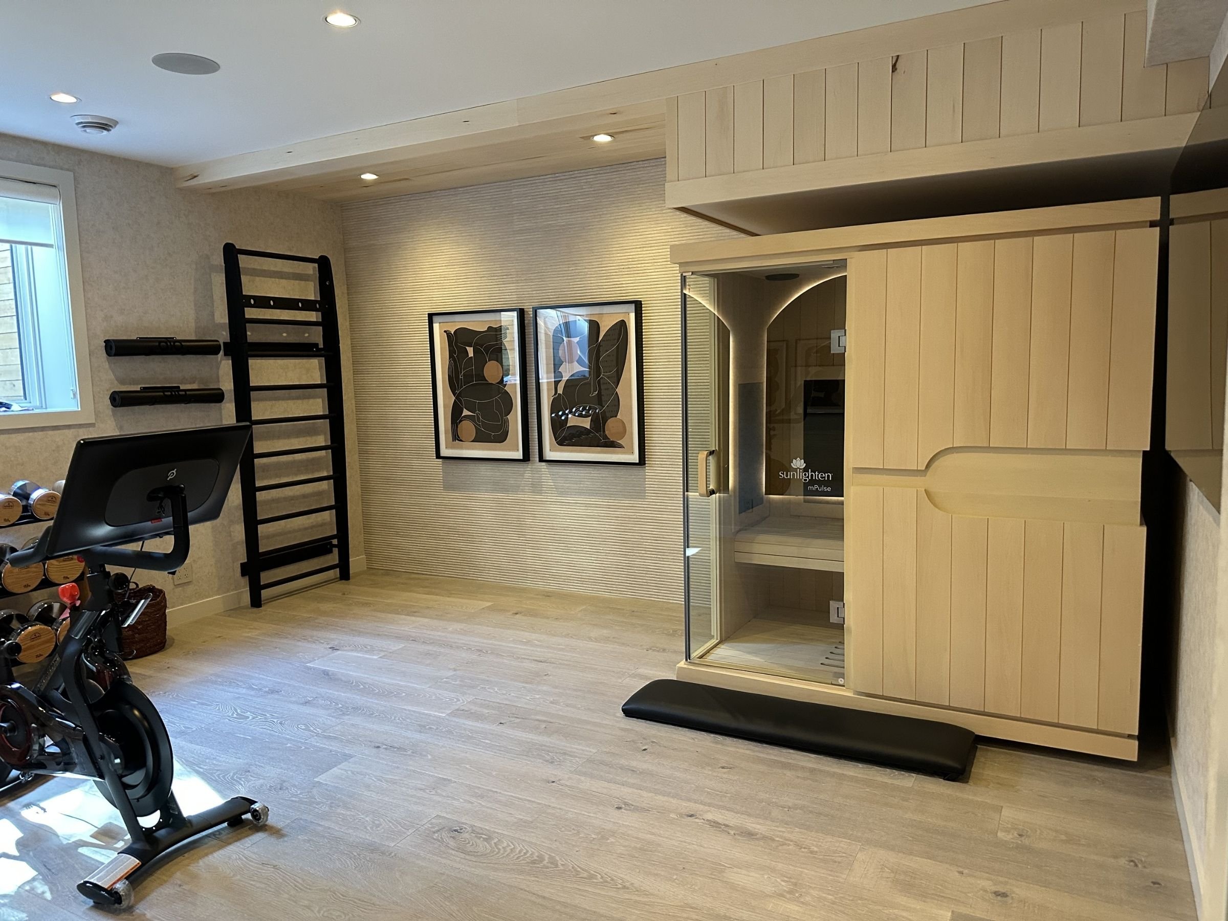 This home health and wellness gym and sauna project was designed to create a space dedicated to both movement and restoration. By combining a functional workout area with the warmth of a private sauna, this project transforms everyday wellness into an intentional part of daily life.